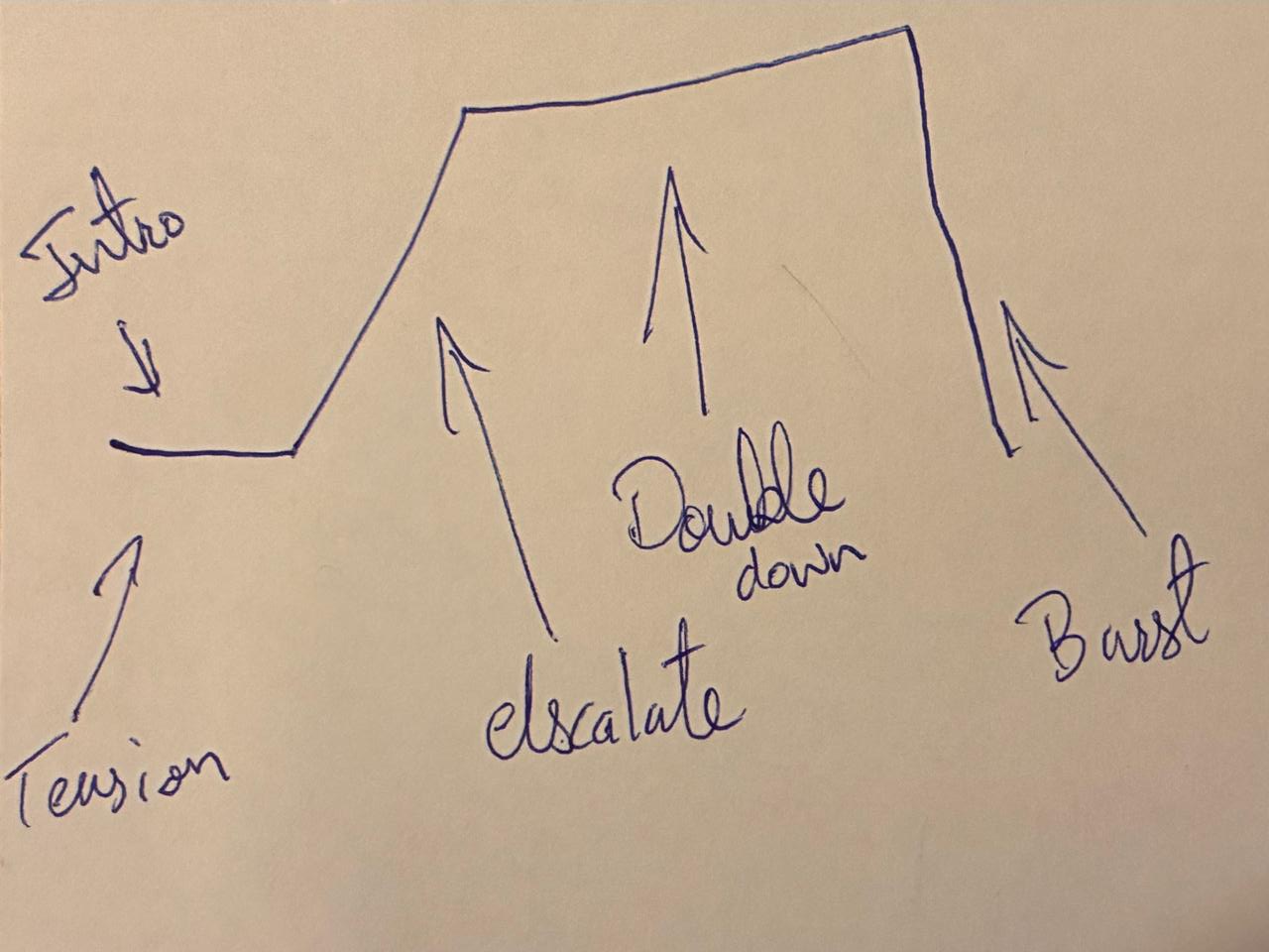 I have come to understand that stories are just collections of escalations and de-escalations. There is a premise setting then there is escalation that goes on for a long time. After that there is de-escalation and then we are back to the phase where we need another period of premise setting.